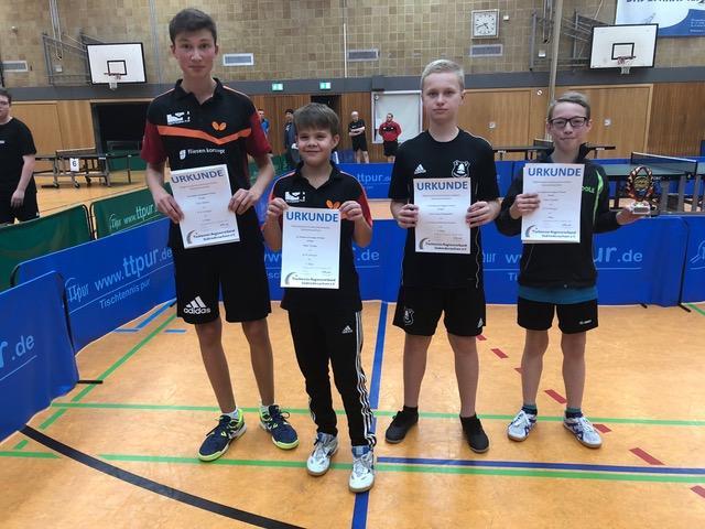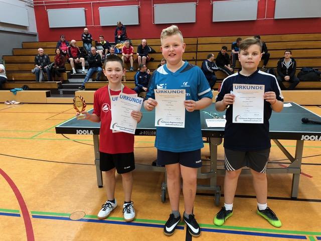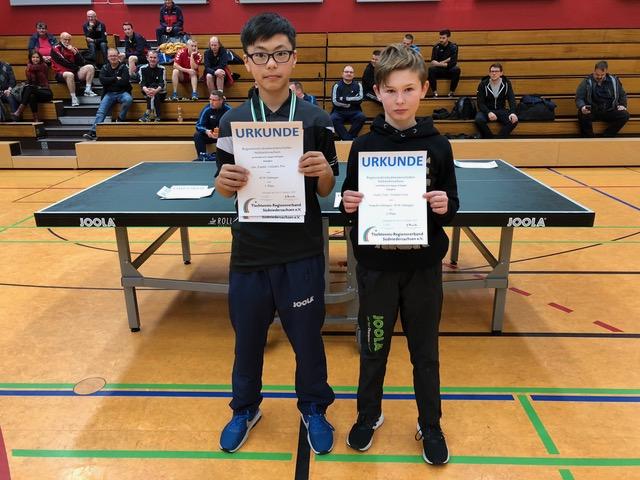 Der Regionsmeister in der Jungen 15 Konkurrenz wurde aus 11 Teilnehmern ermittelt. Im Finale konnte sich Peer Gründel gegen sein Vereinskammeraden Felix Betker vom SCW Göttingen durchsetzen. Den dritten Platz teilten sich Joos Lasse Hoppmann vom SV Schwarz-Weiß Harriehausen und Marc Tiedau vom SCW Göttingen. Das Finale in der Altersklasse Mädchen 18 spielten Sophia Helbing vom TTC Grün-Weiß Herzberg und Sina-Celine Steinfeld vom SCW Göttingen. Erst im fünften Satz konnte sich Sophia durchsetzen und sicherte sich damit den Regionsmeistertitel 2019